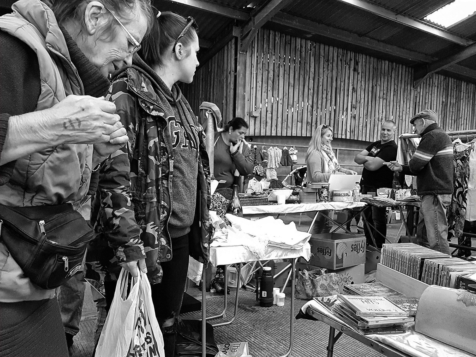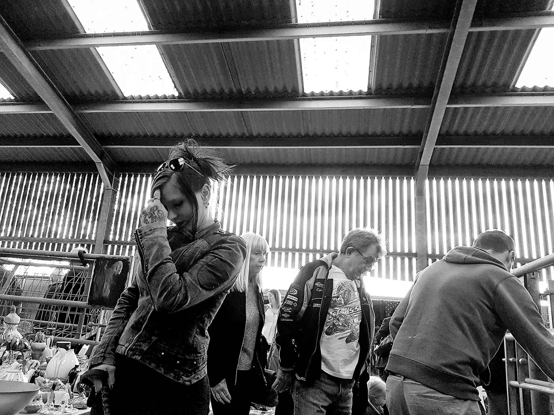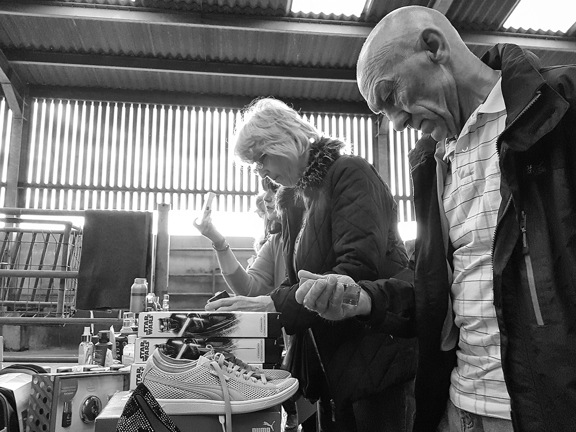 A series of candid photographs taken on a mobile phone at a local car boot fair. The common sight of a mobile phone in my hand raised no suspicions, which may well have happened if I had been using a DSLR.