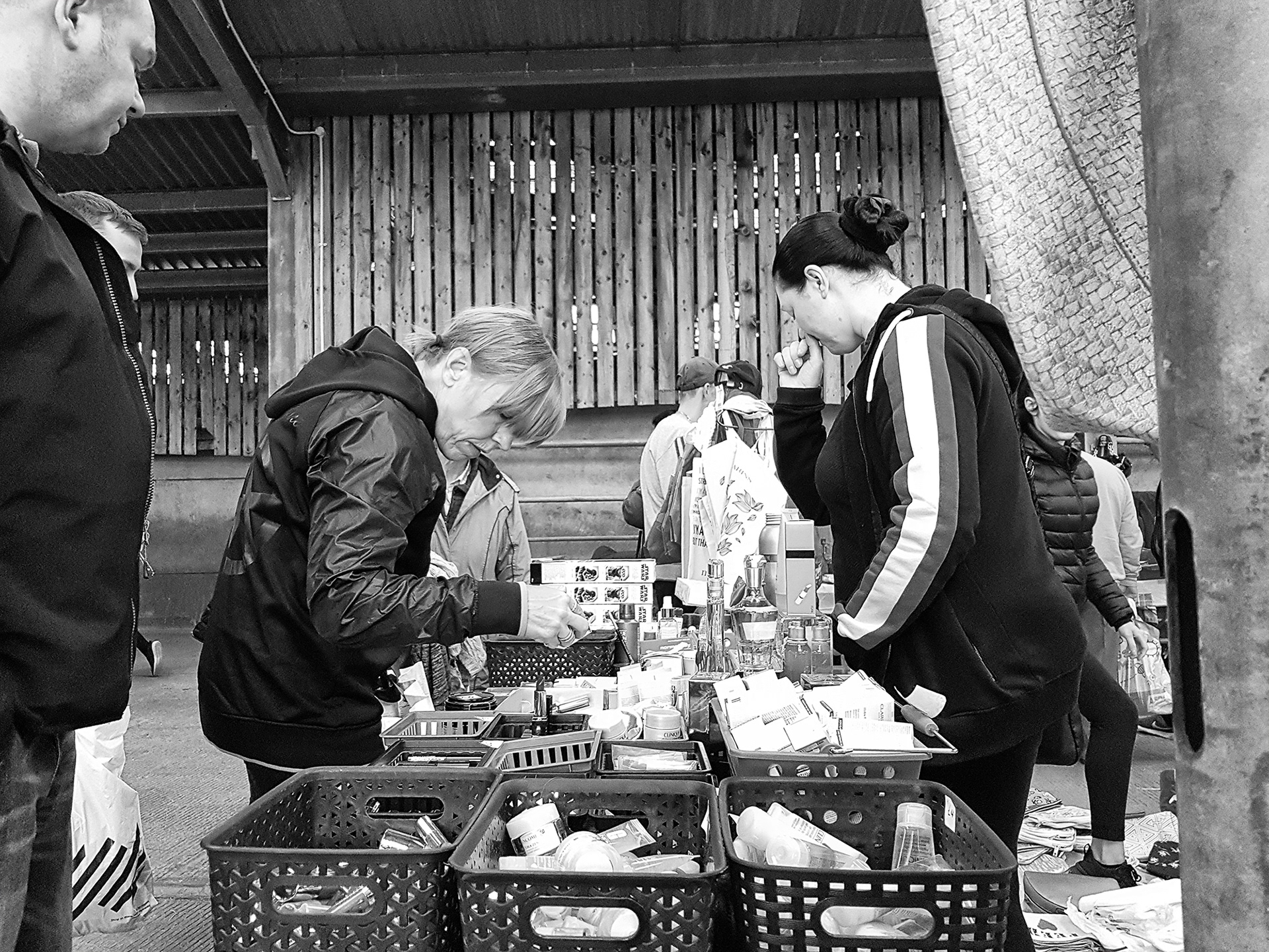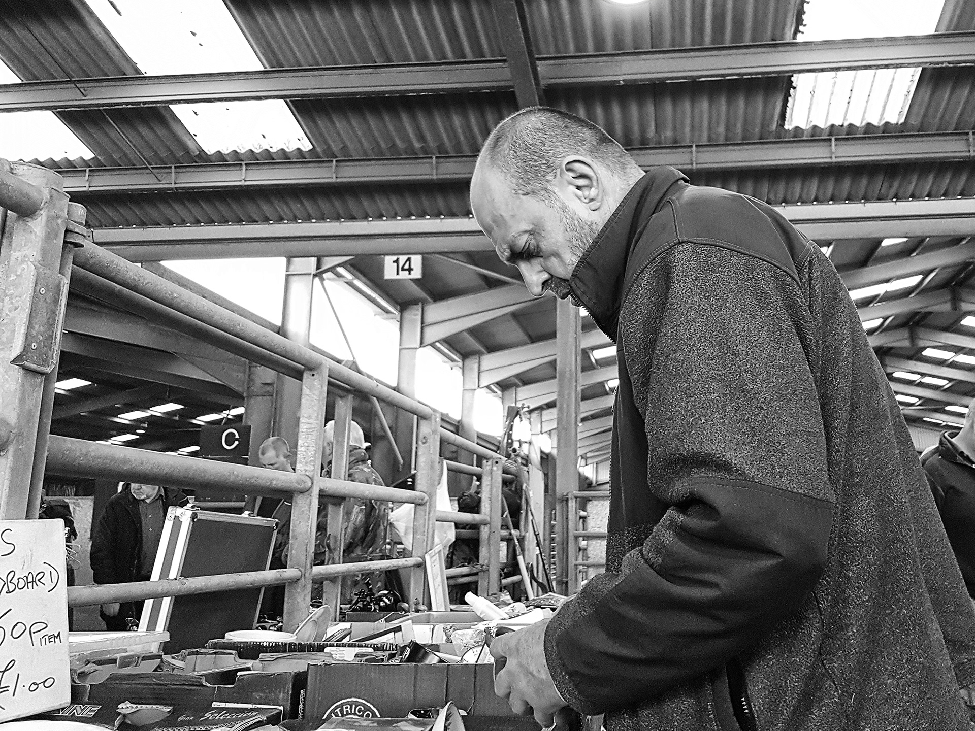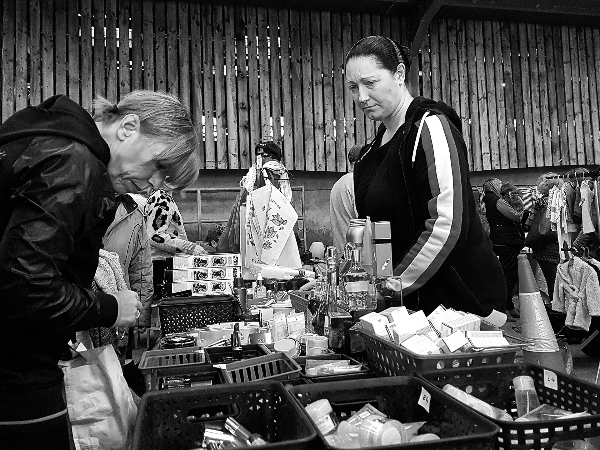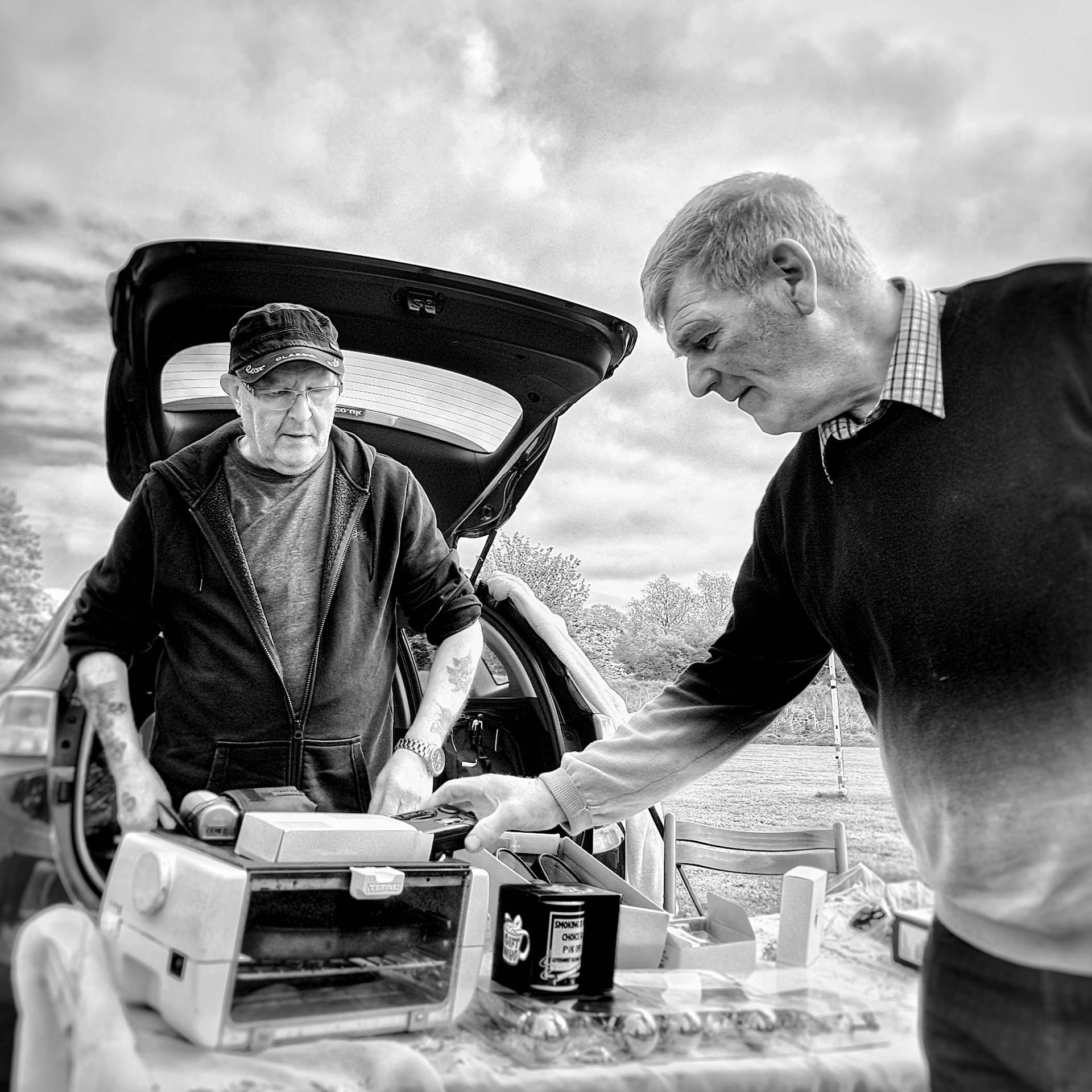 A series of candid photographs taken on a mobile phone at a local car boot fair. The common sight of a mobile phone in my hand raised no suspicions, which may well have happened if I had been using a DSLR.