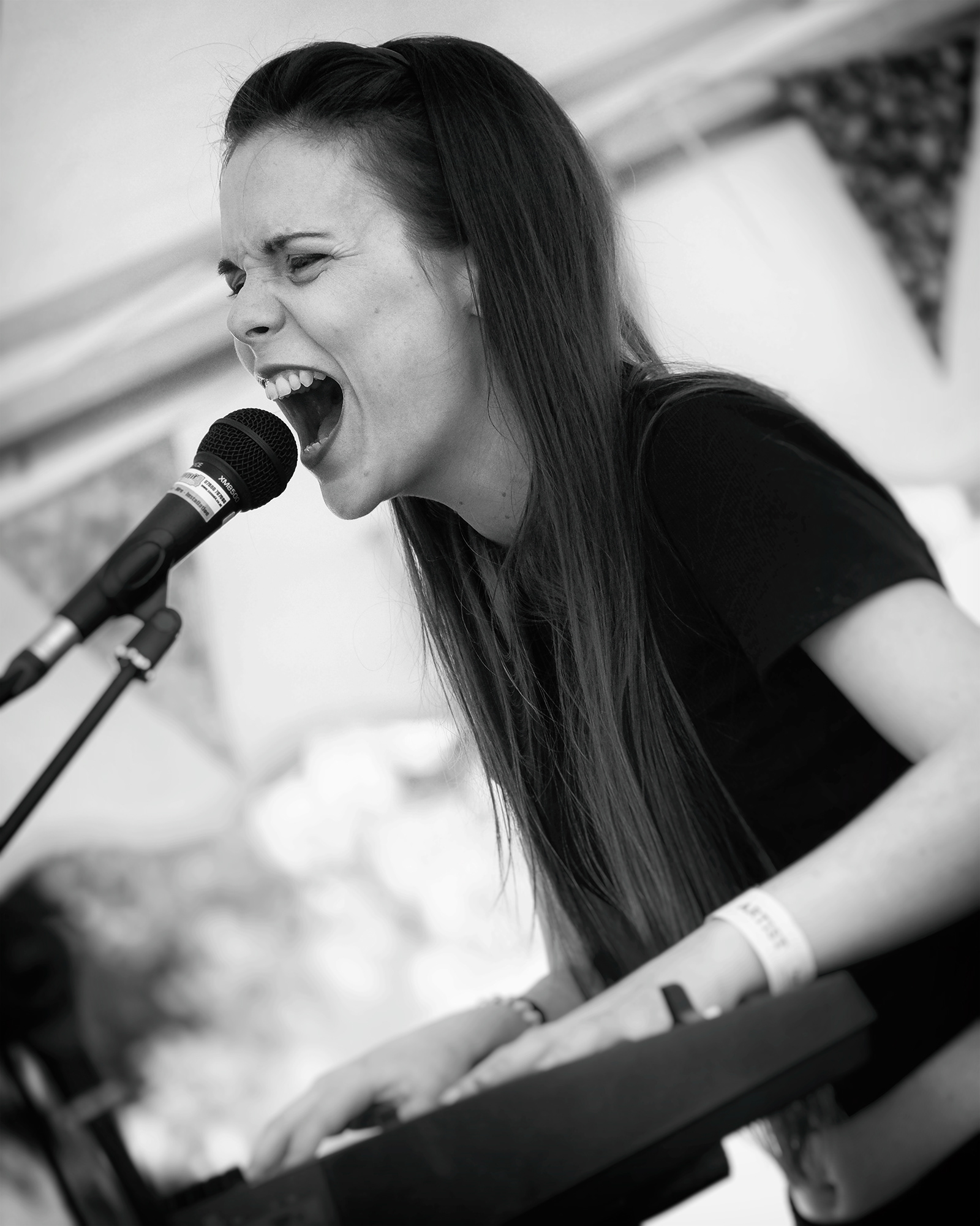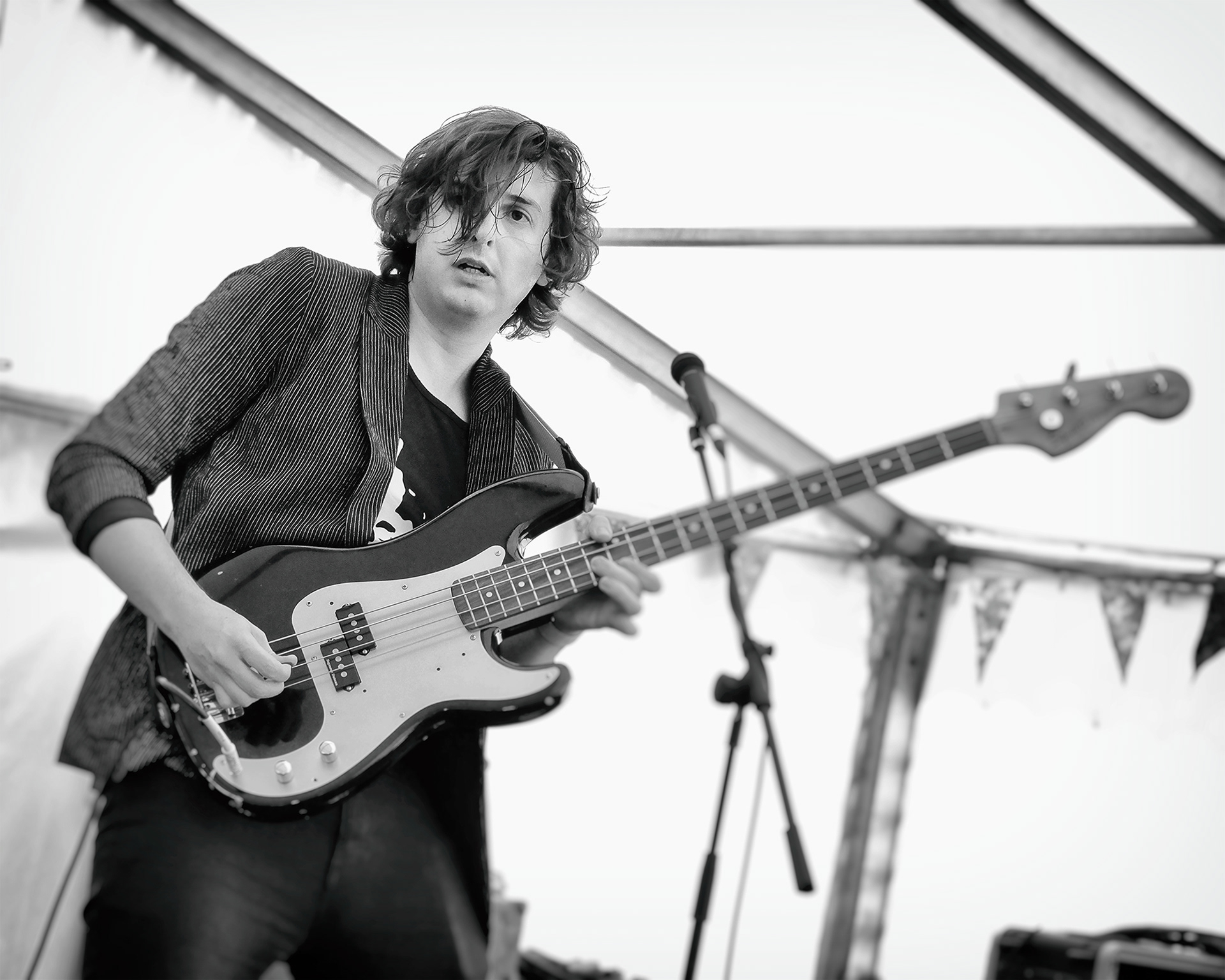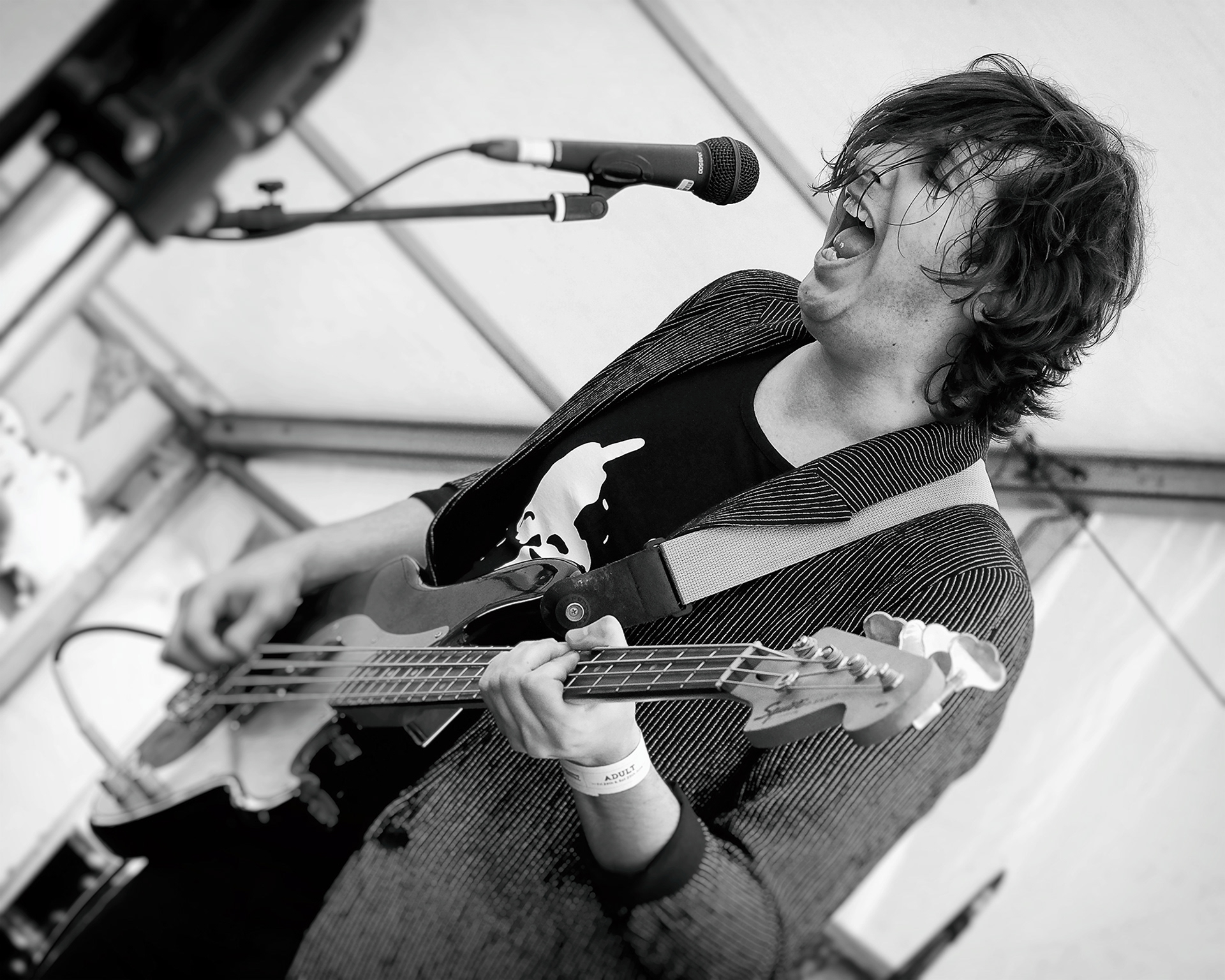 A selection of photographs of the band, Twist Helix, on stage at the 2019 Corbridge Festival.