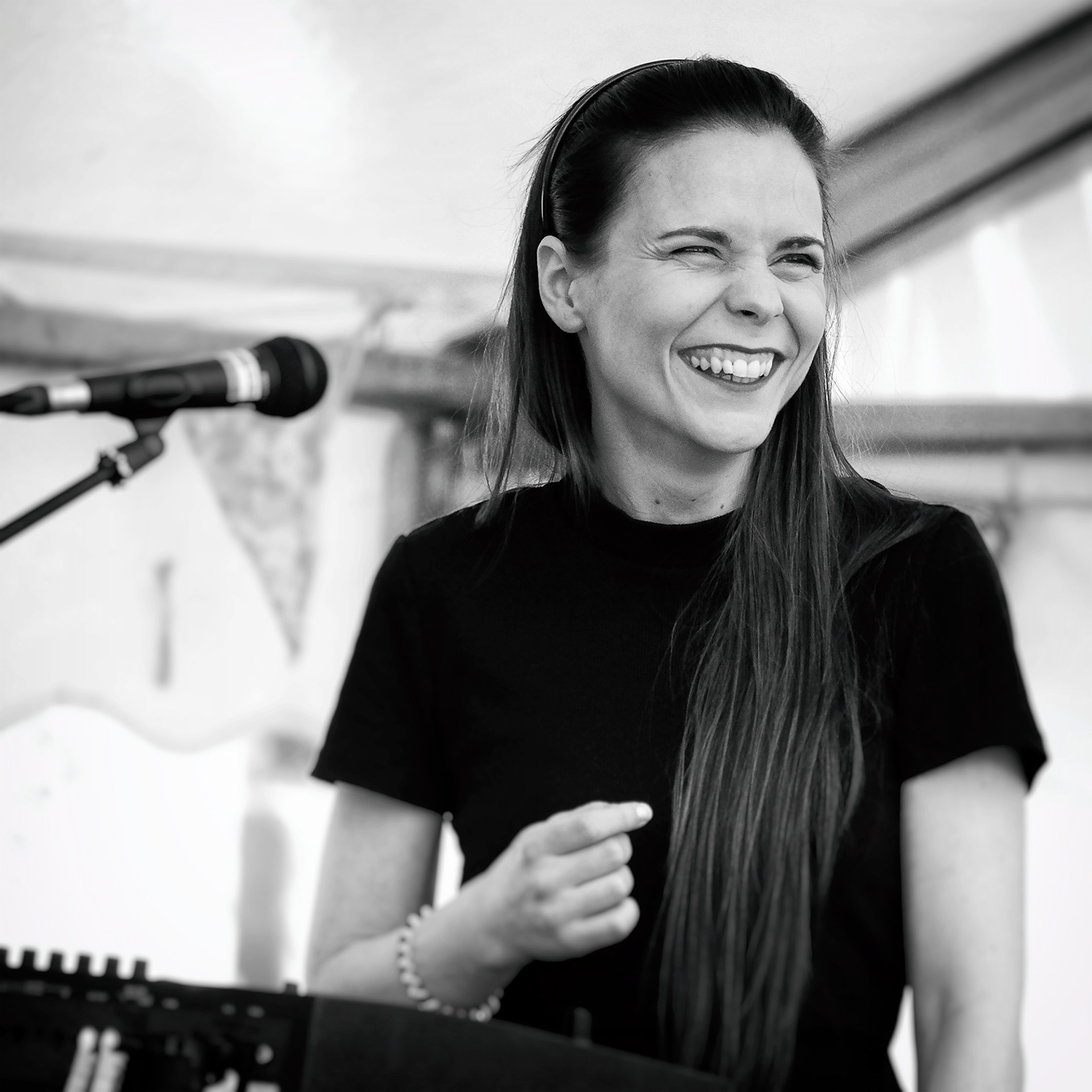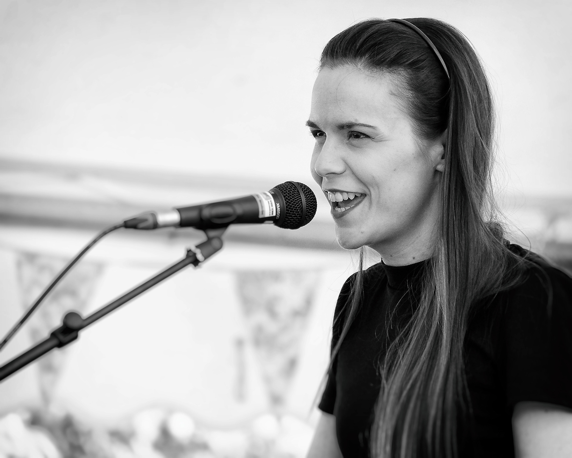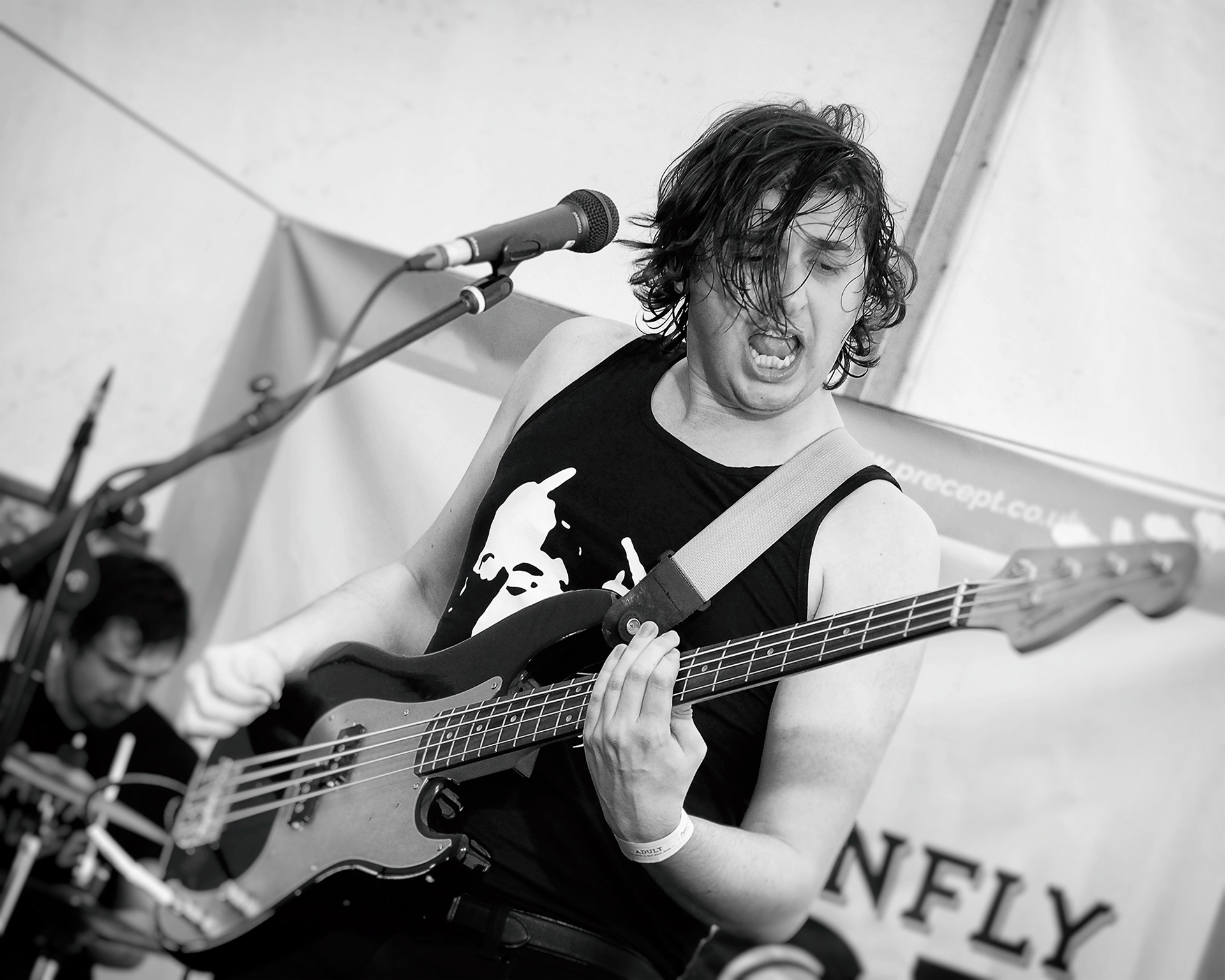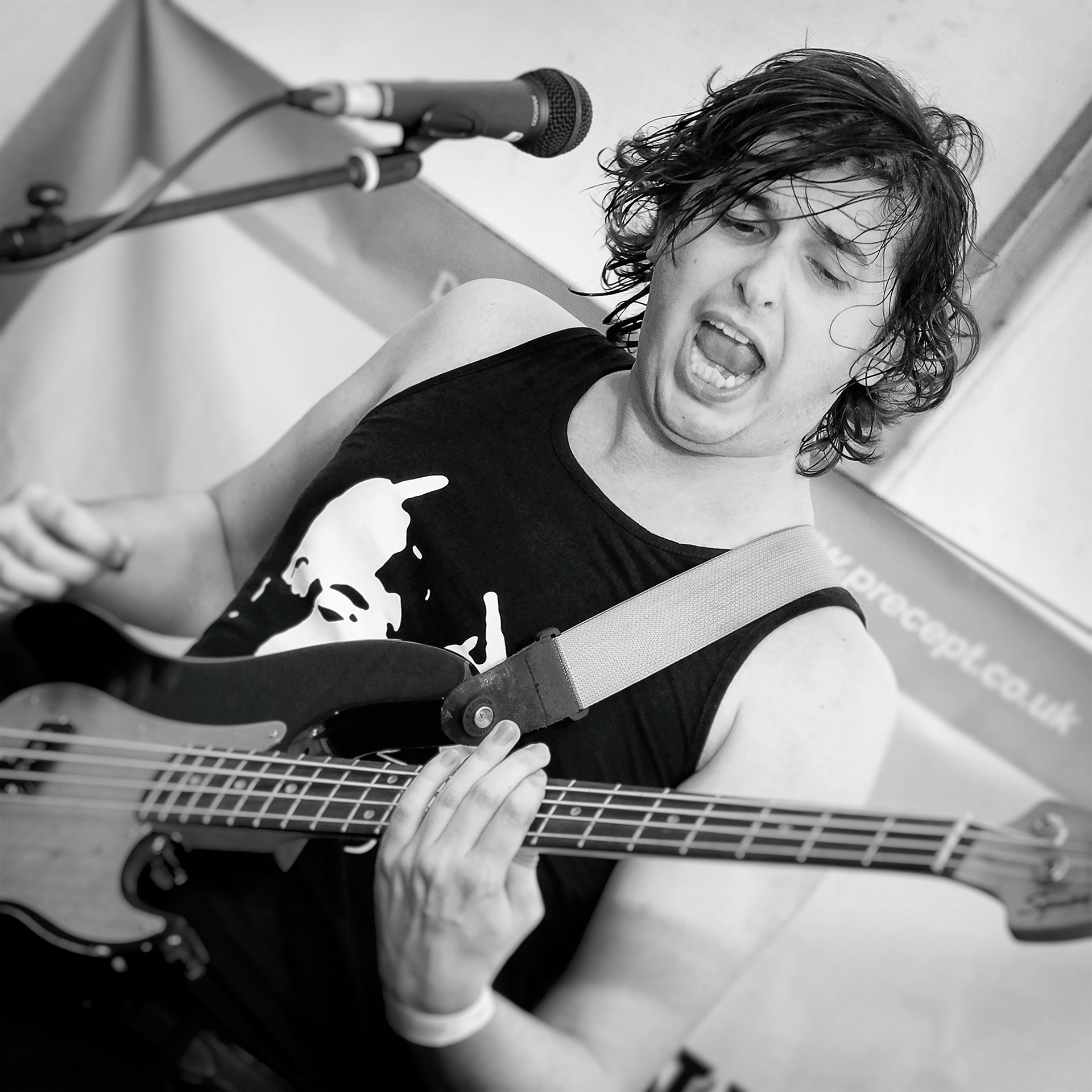 A selection of photographs of the band, Twist Helix, on stage at the 2019 Corbridge Festival.